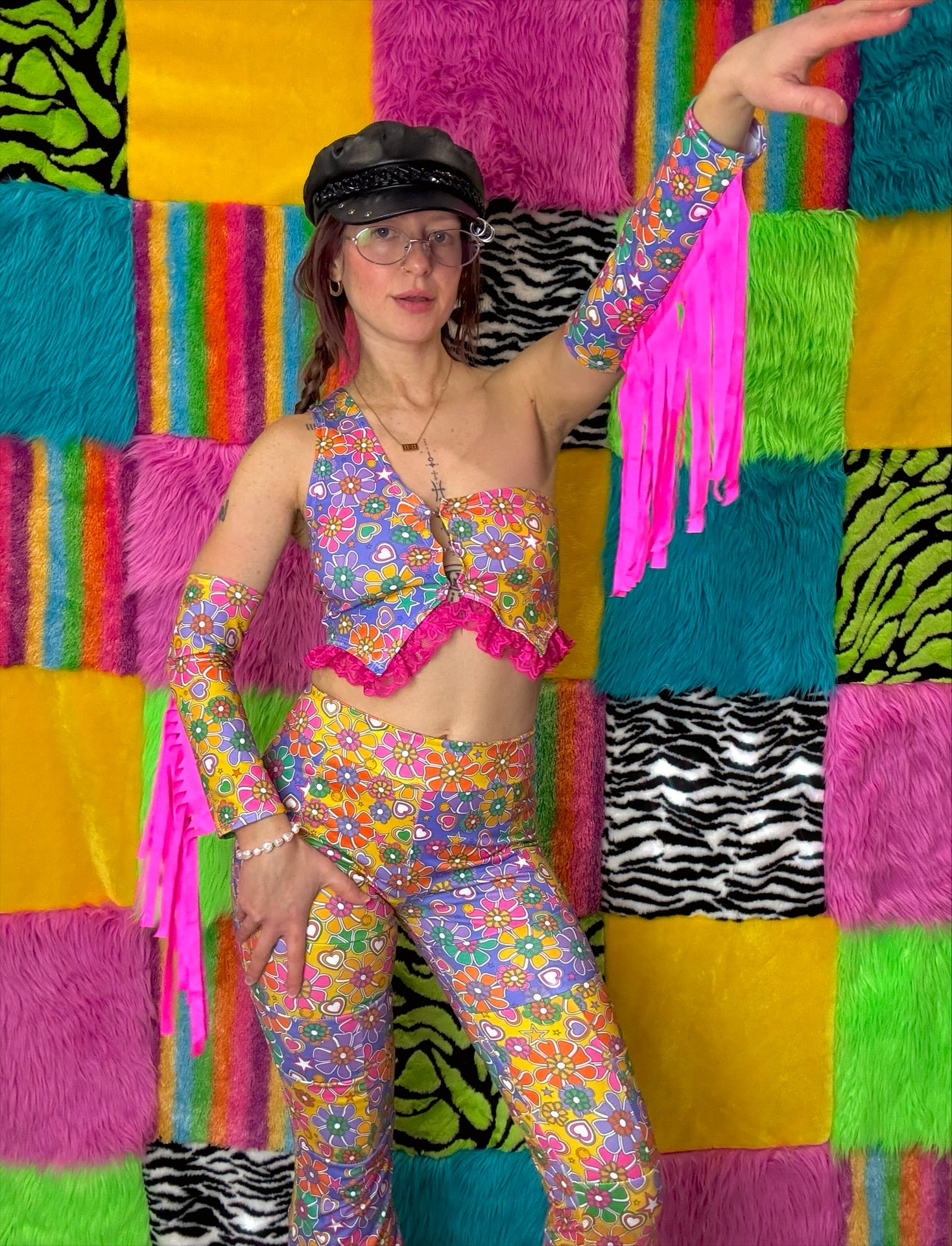 Asymmetrical vest with pink ruffles