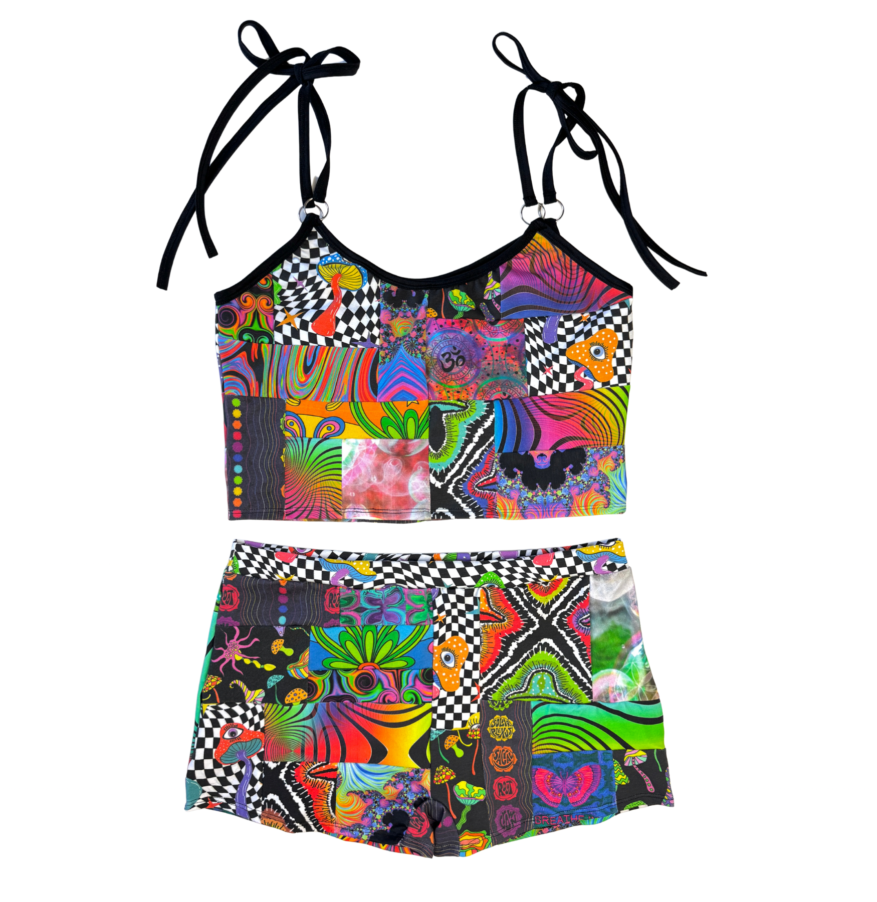 OOAK Patchwork Set - Mid-rise booty shorts & strappy tank