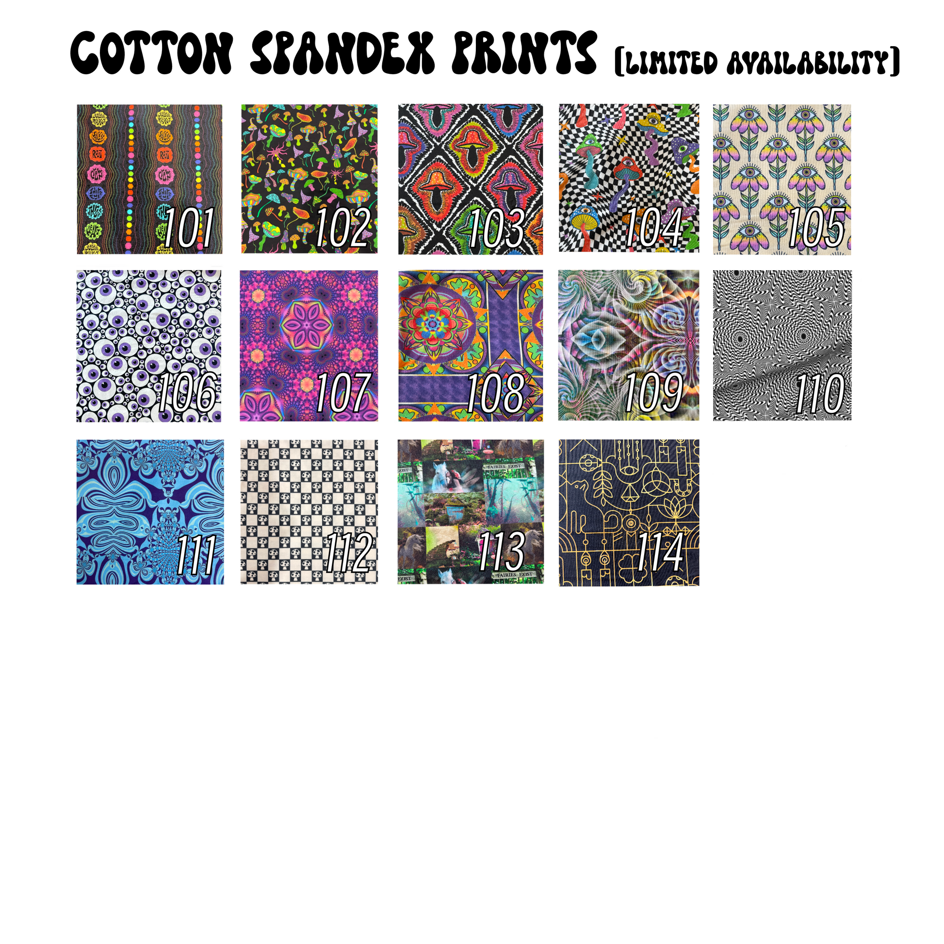 · I recommend only choosing prints that are the same fabric.. ie. all cotton spandex, or all sold & printed spandex
