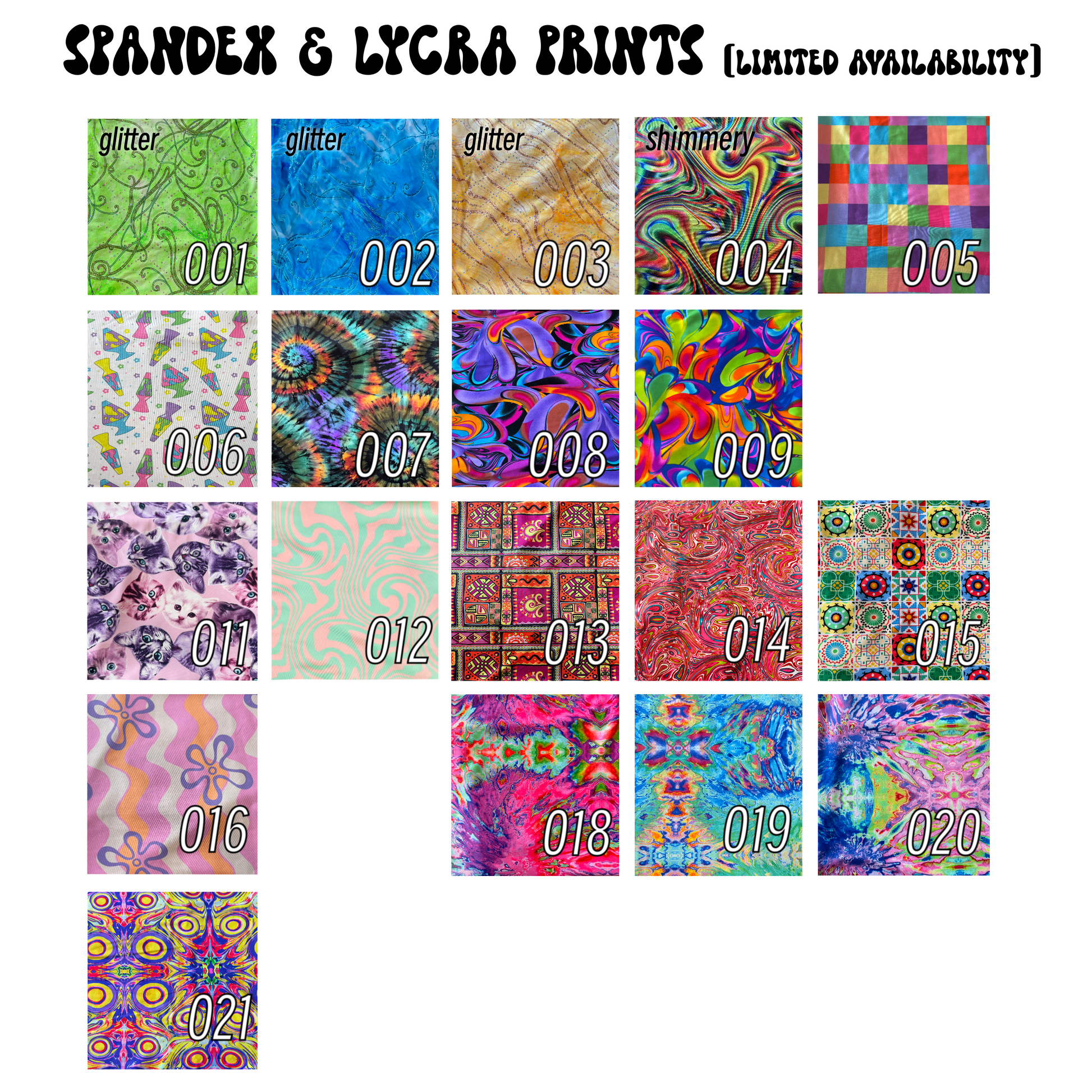 · I recommend only choosing prints that are the same fabric.. ie. all cotton spandex, or all sold & printed spandex